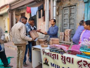Highlights of Jinagna Yuva Trust organized Offering of clothes 🧥 – date palm – sesame seeds to the sanitation workers of Ahmedabad Pol area