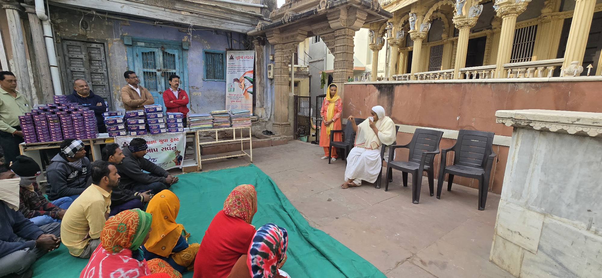 Highlights of Organized by Jinagya Yuva Trust Cheeky offering of thermal – saree – singni – sesame to the cleaning workers of Ahmedabad pol area…