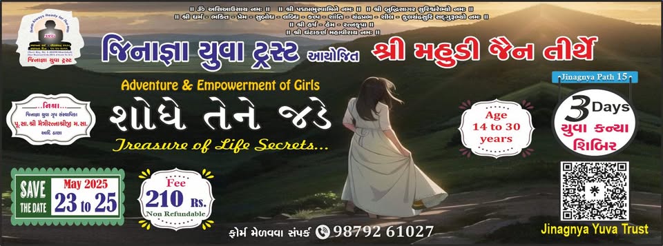 Jinagnya Yuva Trust organized Shri Mahudi Jain Tirth Adventure & Empowerment of Girls β¨ Jinagnya Path15 β¨ π© Three-day Youth Girls Camp π©