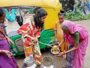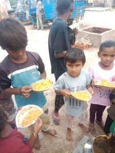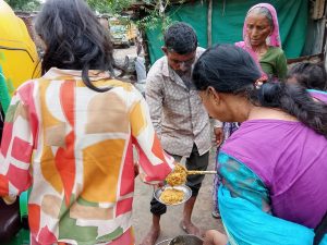 The families affected by the extremely heavy rains were given Khichdi food by the Jinajna Yuva Trust.